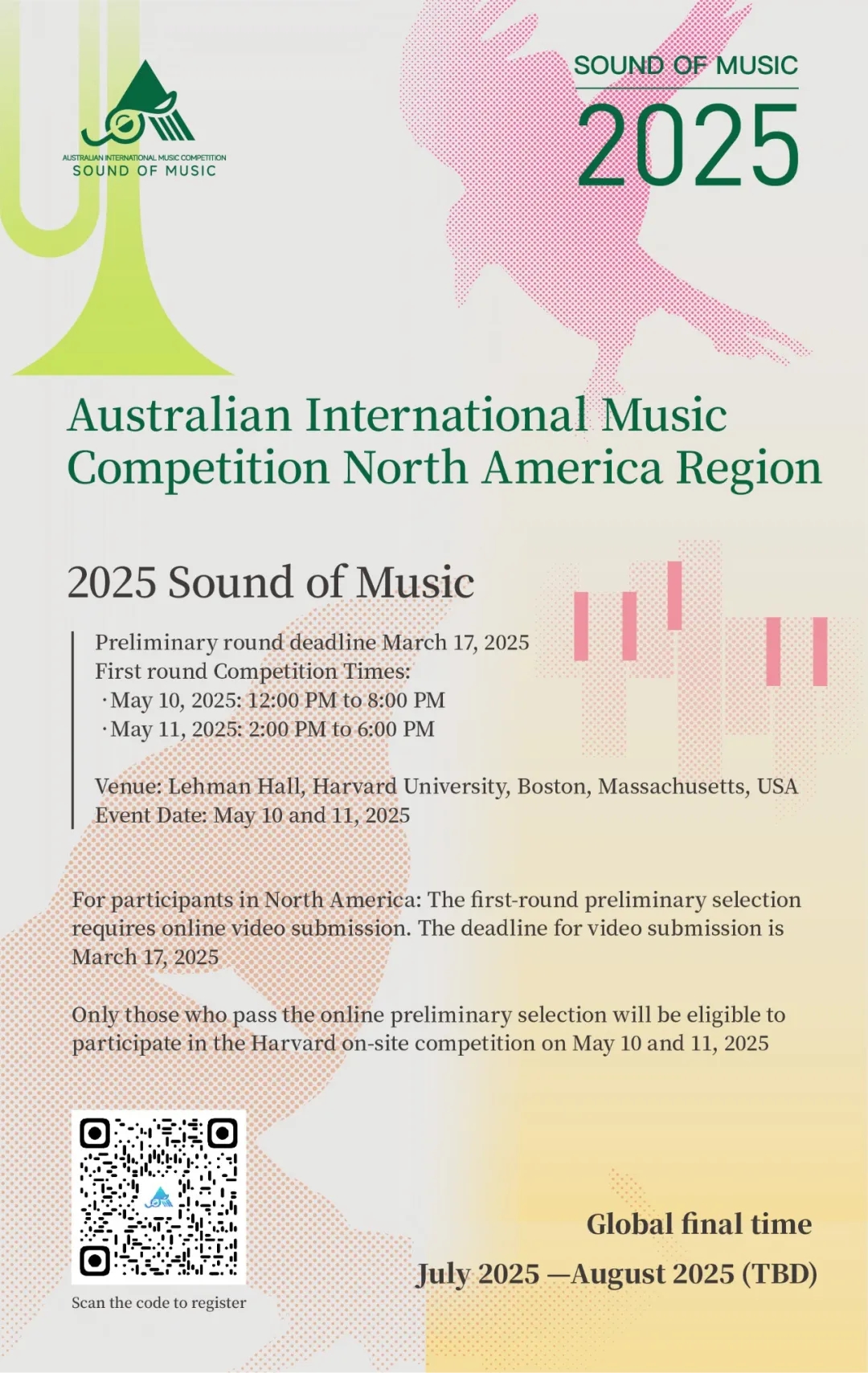 Official Announcement! The 2025 Australia International Music Competition – North America Region will be held at Harvard University on May 10th and 11th!